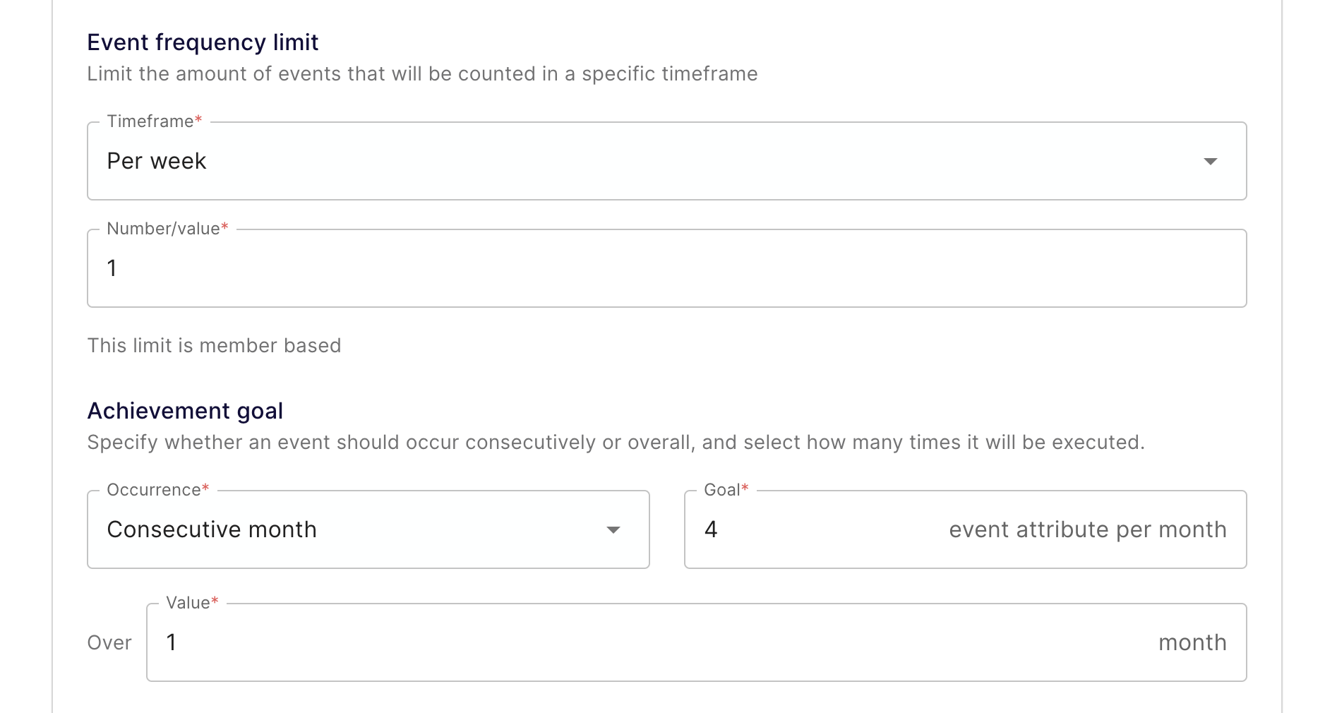 If you want to edit the settings after members start participating we advise you to create a new Achievement. In the case of editing any of the rule sets, all member progress will be lost.