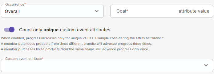 For example, if you're monitoring progress based on 5 new events, you can choose to track only unique values from a specific attribute (included in the custom event data).\