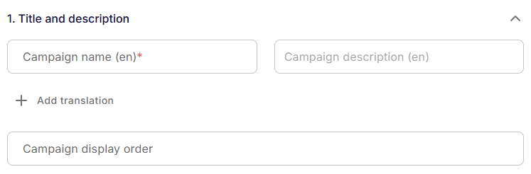 Display Order (optional) – Type campaign number on the list (if you use it for ordering)
