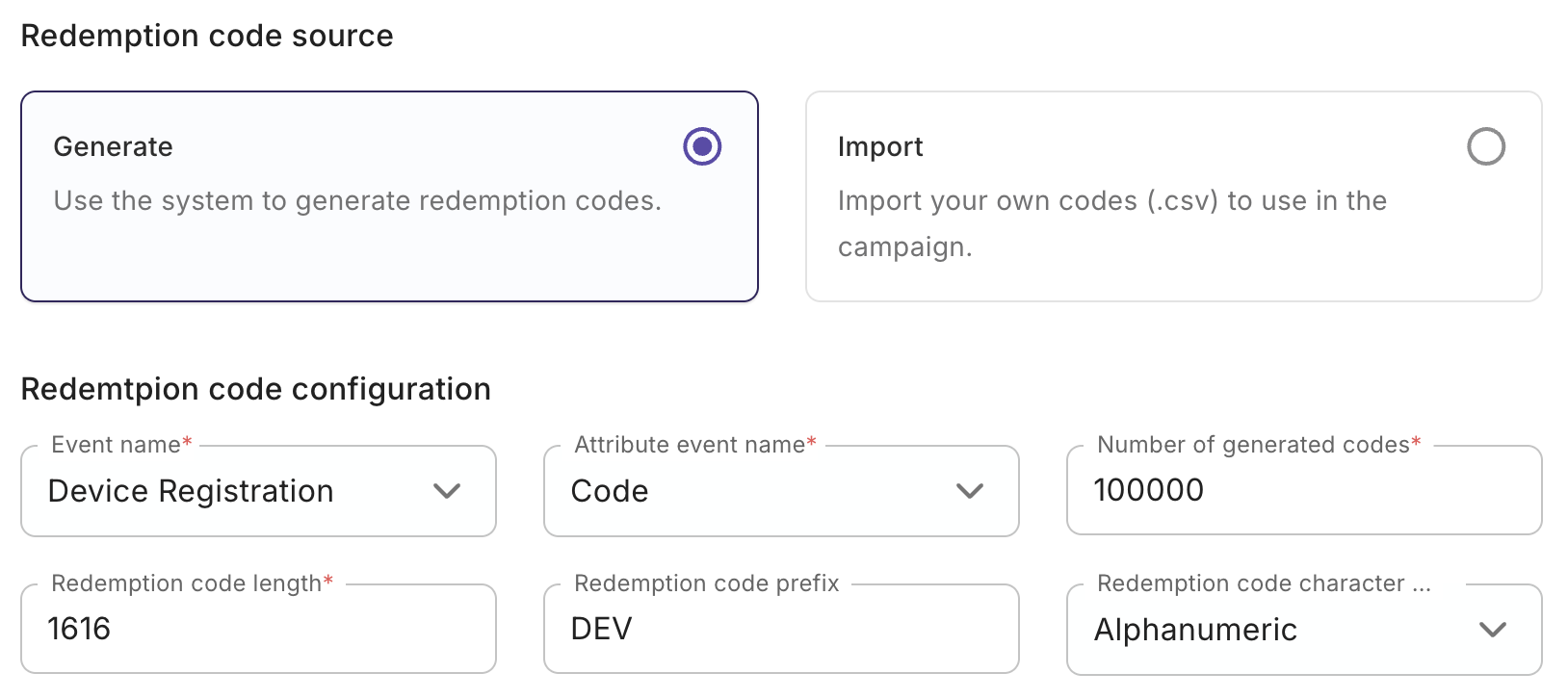 * **Test thoroughly**: Generate a small set of codes, import them into your schema attribute, and test redemption scenarios.