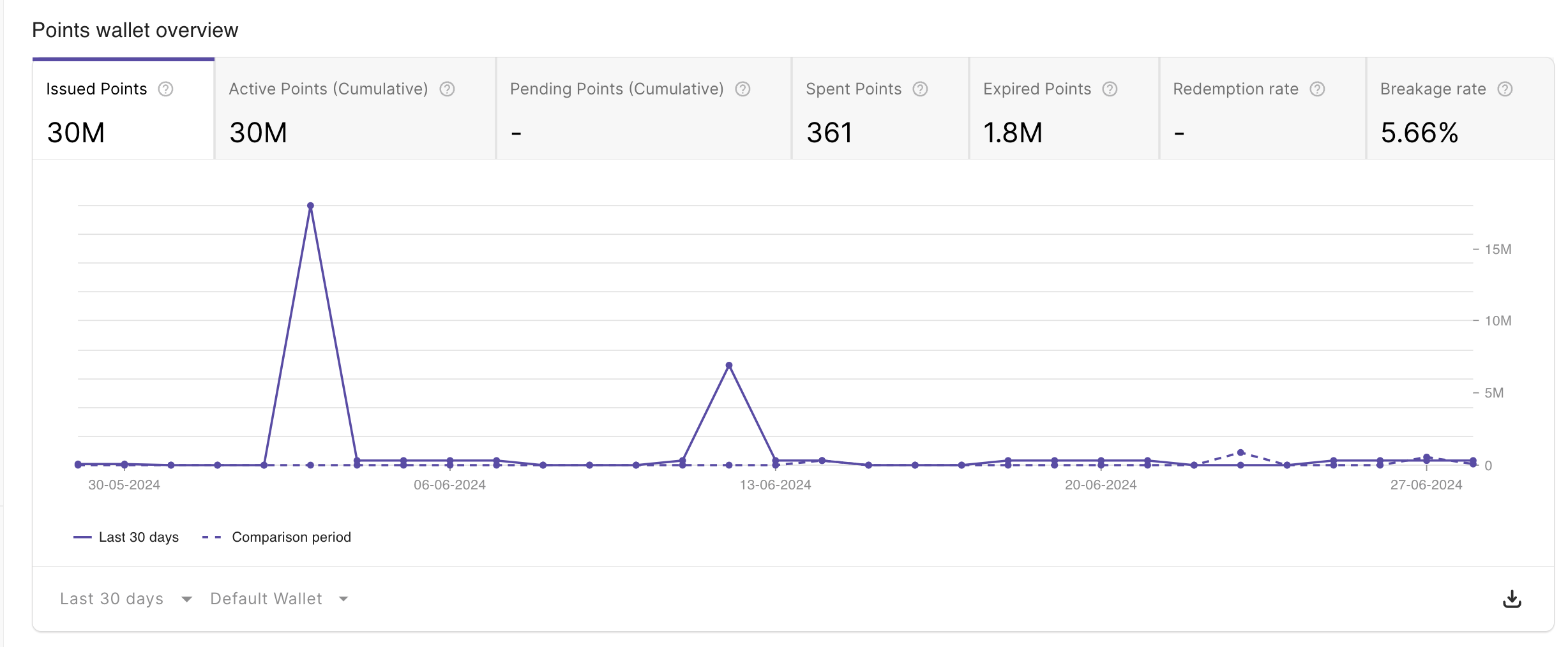 * **Breakage rate** - the rate of points that have been issued and expired (Breakage rate value = expired/issued&#x20;