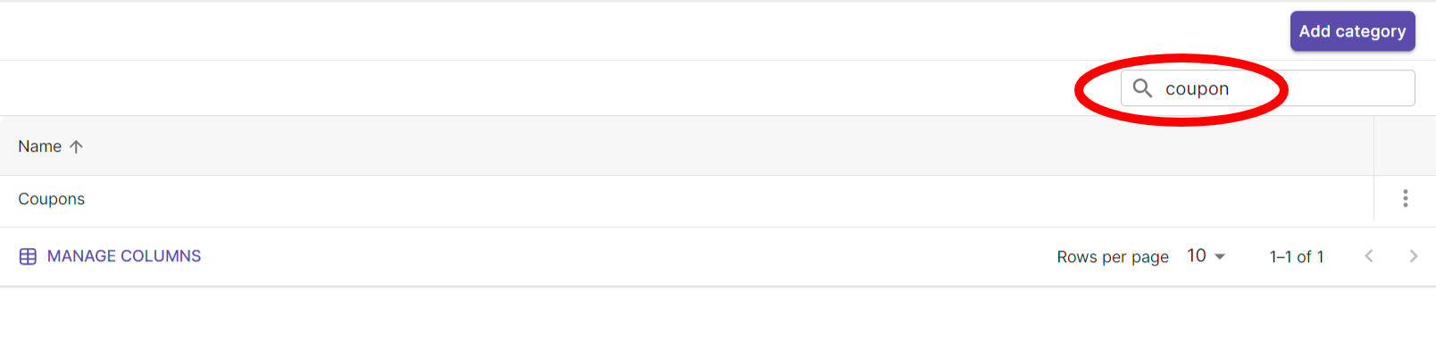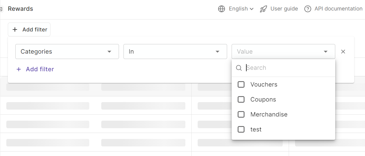 To find the specific reward category, you use a Search Table available in the upper right corner under the 'Add Category' button. The search field allows you to find the reward category via the name: