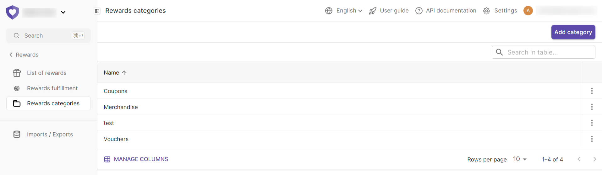 * **Sort order** - how the category will be displayed on the  reward categories list