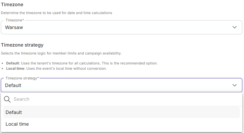 When **Local time** is selected, we recommend setting **UTC** as the tenant's timezone for consistency.