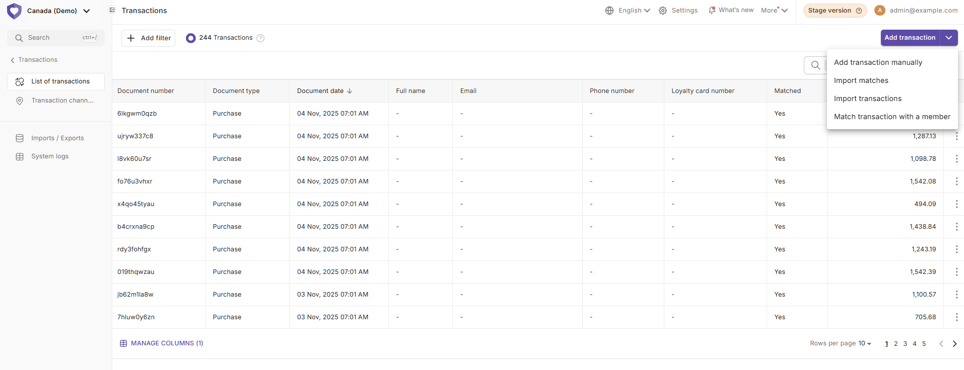 | **Full name / Email / Phone / Loyalty card** | Data of the member associated with the transaction.                        |